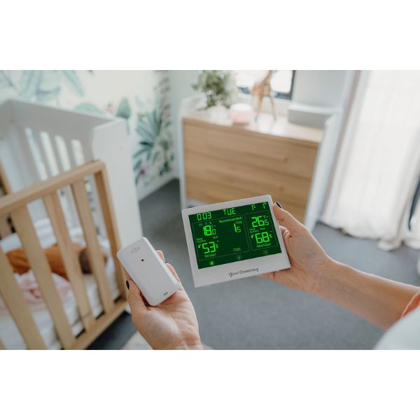 Set the perfect conditions for a great night’s sleep. Temperature and humidity are the two most critical factors you can control in any baby's room, and the Glow Perfect Sleep Sensor allows you to monitor this from anywhere in the house, ensuring conditions are always conducive for a safe and comfortable sleep. The smart sensor technology will inform you of the best TOG based on the conditions of your child’s sleep space, not based on the weather outside. Easy to set up and use with each sensor being fully portable!