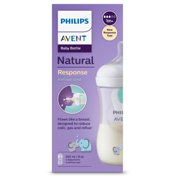 Avent Natural Response Bottle with AirFree Vent 260ml 1pk Elephant