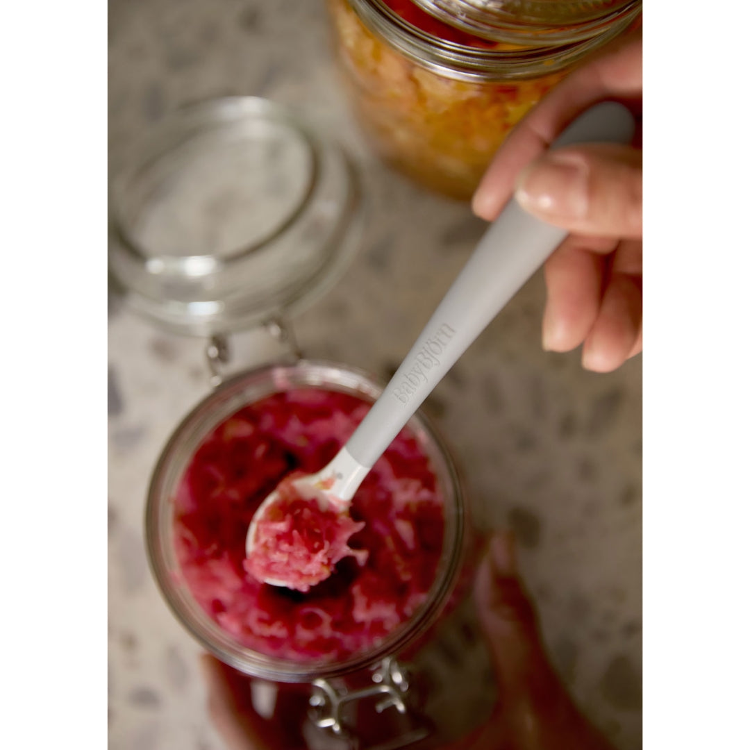 Turn feeding into an enjoyable moment with the BabyBjorn flexible feeding spoon. Its ergonomic grip and soft front are gentle on your child's mouth. It’s also great for reaching into jars.