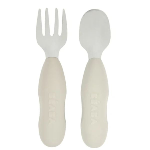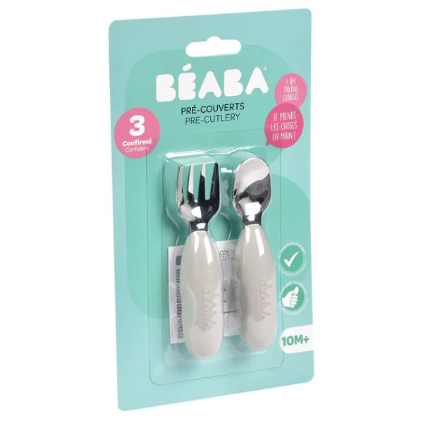 Beaba Fork & Spoon Stainless Steel Pre-Cutlery Velvet Grey