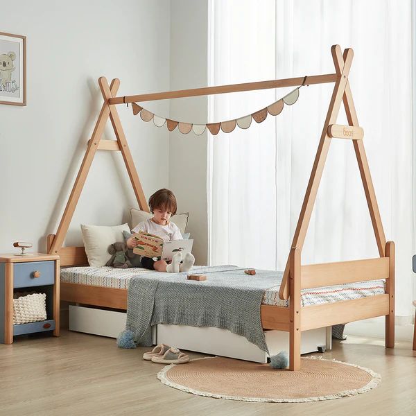 - Playful teepee bed design to add a bit of excitement to the kids' bedroom.