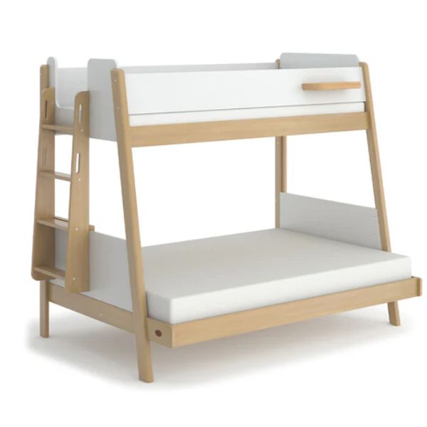 The Natty Maxi Bunk Bed is a space-saving triple sleeper bunk bed with a modern two-tone design. The top bunk is a standard Australia single size and the bottom bunk is a double bed size, making it ideal for older siblings and sleepovers.