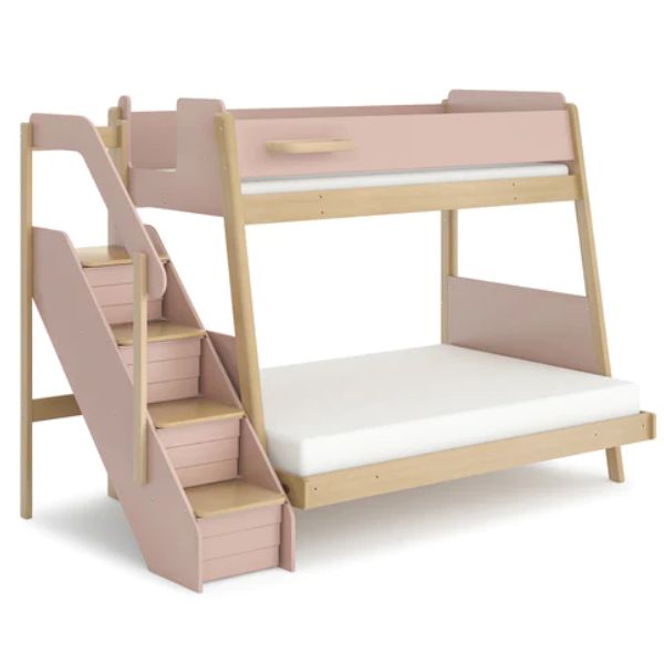 The Natty Maxi Bunk Bed with Storage Staircase is a space-saving triple sleeper bunk bed with a modern two-tone design. The top bunk is a standard single bed size and the bottom bunk is a standard double bed, making it ideal for older siblings and sleepovers.