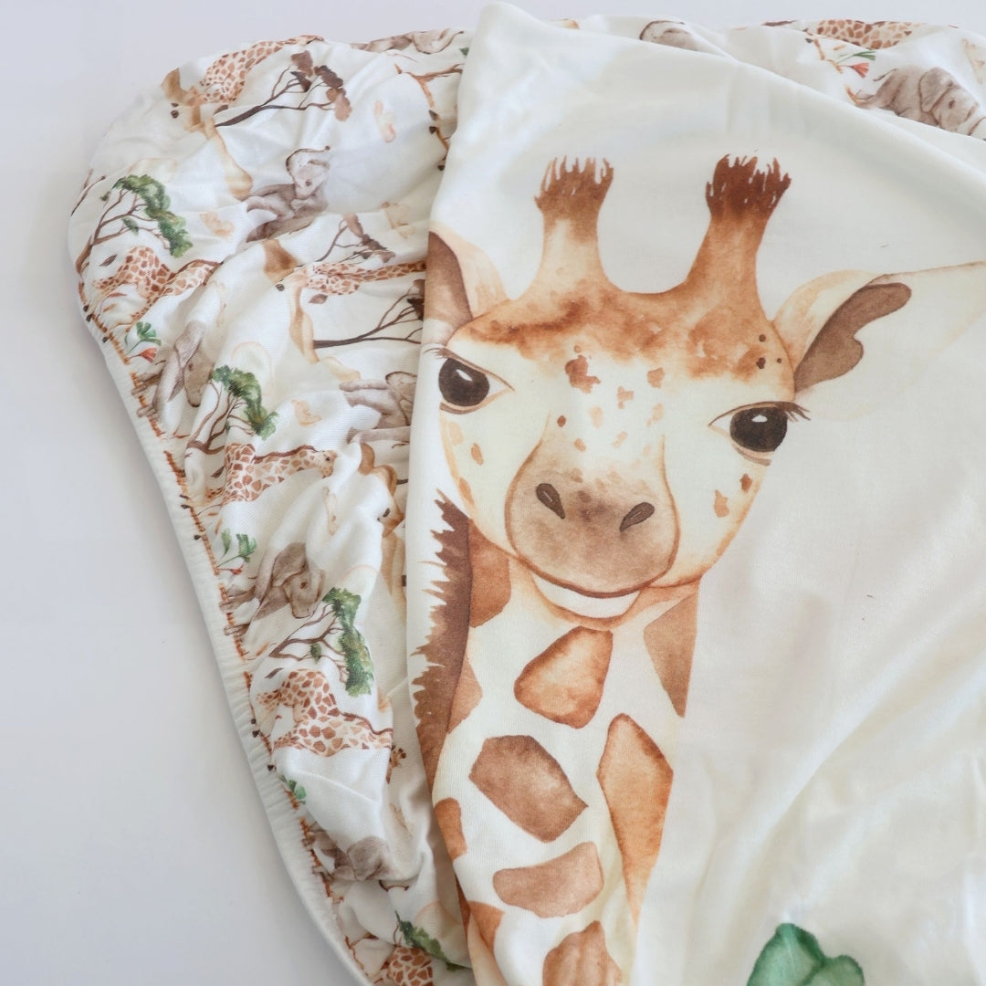Welcome to a world of wonder with the Adventure Bamboo Baby Nursery Collection! Transform your little one's space into a vibrant tropical jungle filled with the enchanting spirit of watercolour-illustrated giraffes and elephants.