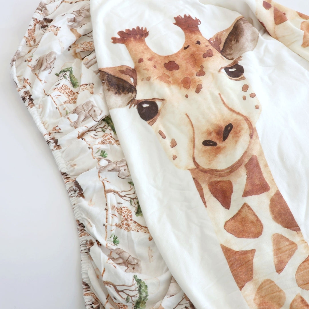 Welcome to a world of wonder with the Adventure Bamboo Baby Nursery Collection! Transform your little one's space into a vibrant tropical jungle filled with the enchanting spirit of watercolour-illustrated giraffes and elephants.