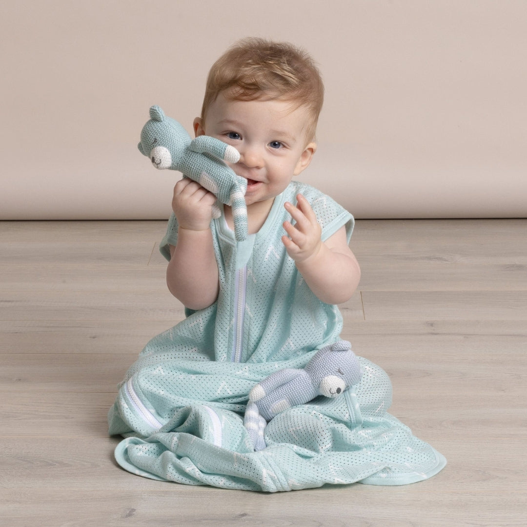 Little ones will delight in these cute knitted bear rattle toys. Crafted with a soft knit texture in a stylish colour palette, they feature a gentle rattle sound to stimulate your child’s senses. Long arms and legs provide easy grip for little hands.