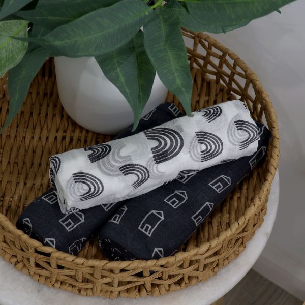 Bubba Blue Nordic Muslin Wrap 3pk Charcoal/White