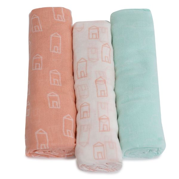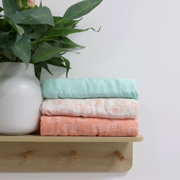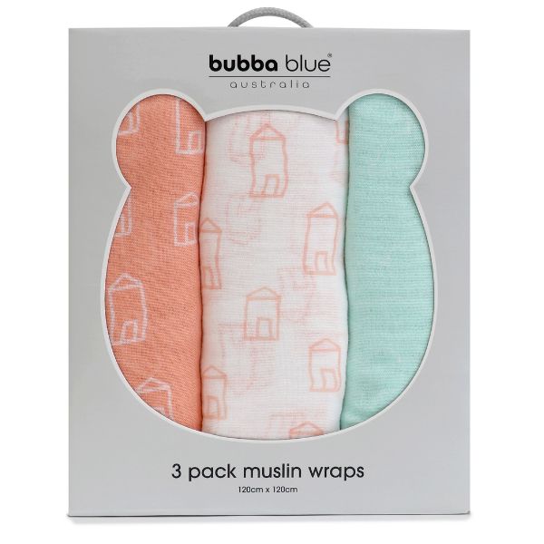 Bubba Blue Nordic Muslin Wrap 3pk Coral/Tiffany