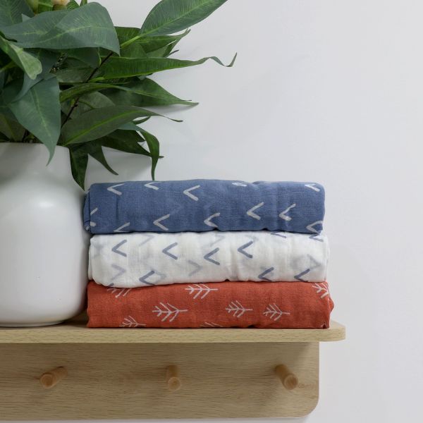 Bubba Blue Nordic Muslin Wrap 3pk Denim/Clay