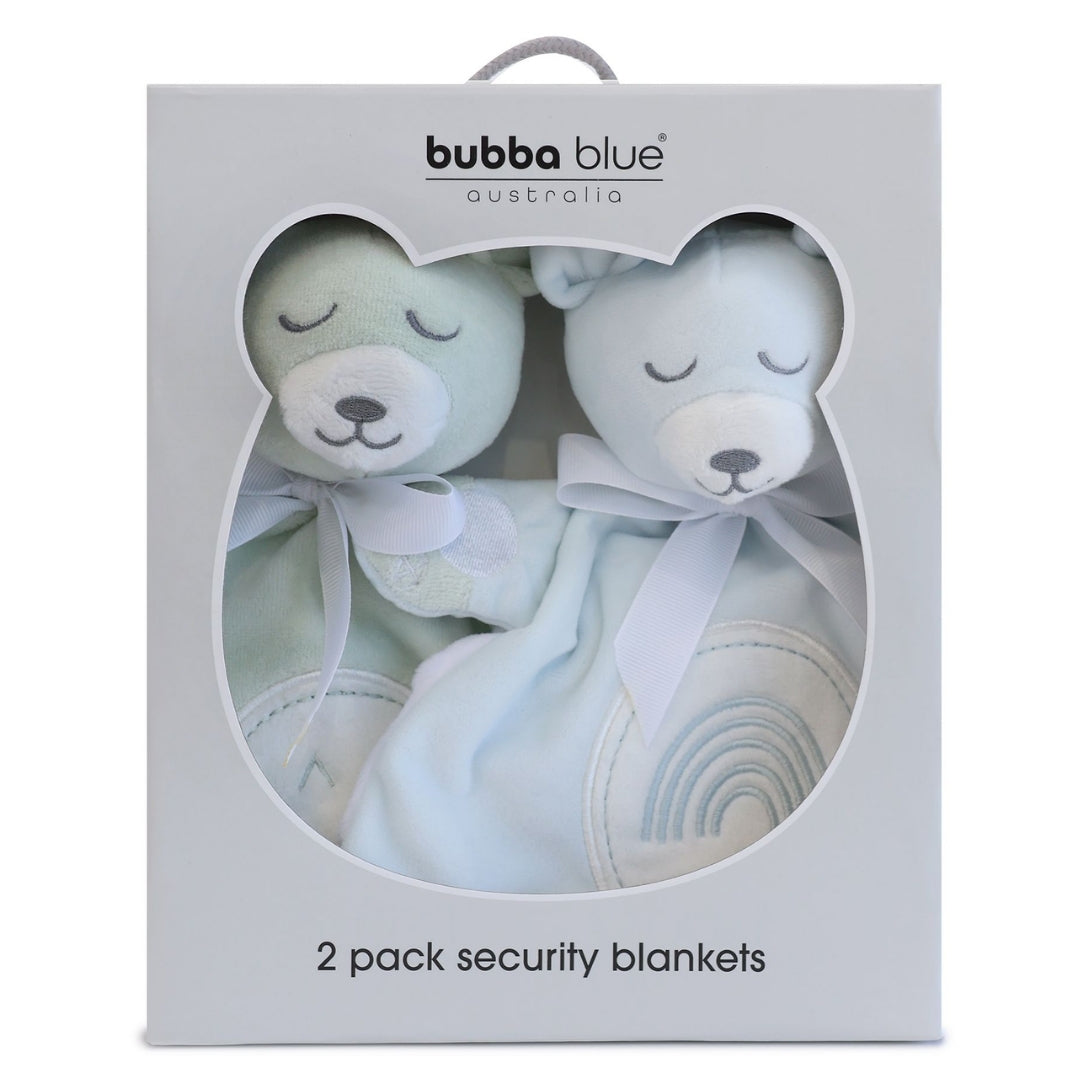 Bubba Blue Nordic Security blankets with their cute bear face, knotted corners & soft and cuddly velour blanket body are sure to become your babies favourite. The security blankets make the perfect first comfort toy for babies. Now available in a convenient two pack.