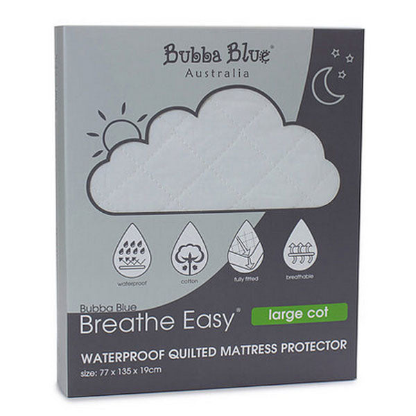 You and your baby can rest easy with Bubba Blue's range of fitted Breathe Easy® Waterproof Quilted Mattress protectors.