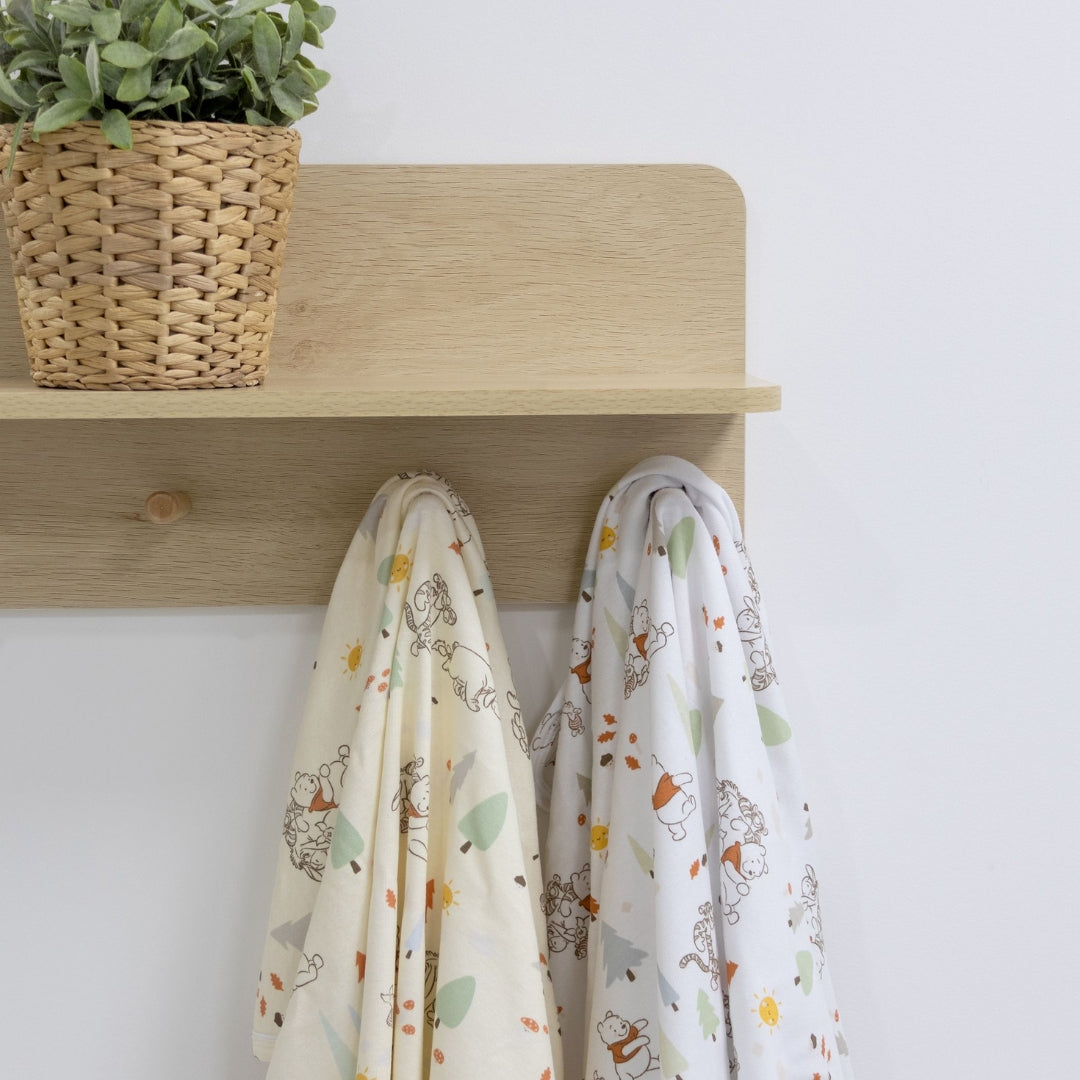 These beautiful soft printed wraps are ideal for swaddling, so your precious bub will be snug as a bug. Featuring adorable Winnie the Pooh and his friends back in 100 Acre Wood, happily walking through the leafy outdoors, discovering what grows around them. Prints and patterns depict the characters at one with nature, discovering all of the beautiful forest foliage.