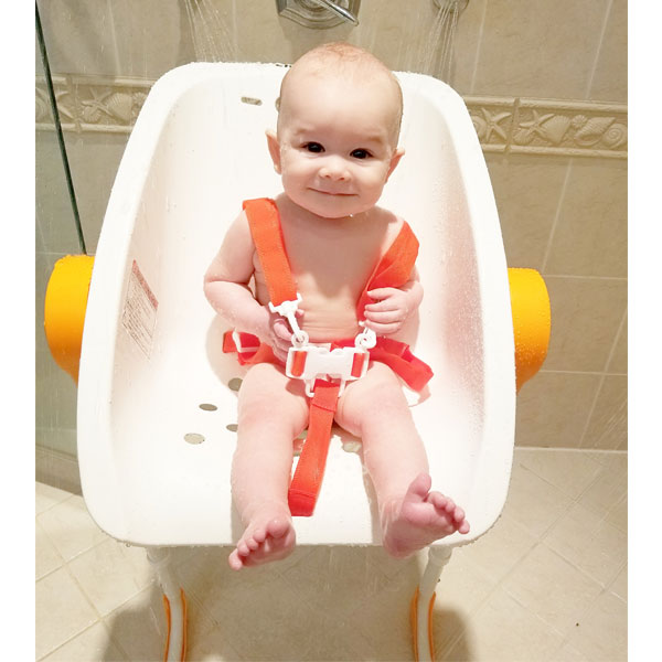 - Five-point adjustable safety harness keeps baby safe while still letting you wash backs and bums.