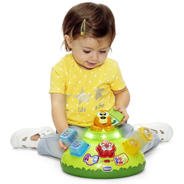 Sam the Mole is an interlocking game with 5 coloured shapes, lights and 2 interactive buttons: it teaches the names of shapes, colours, animal names in Italian and English and entertains children thanks to the songs of animals, letters and of the first numbers.