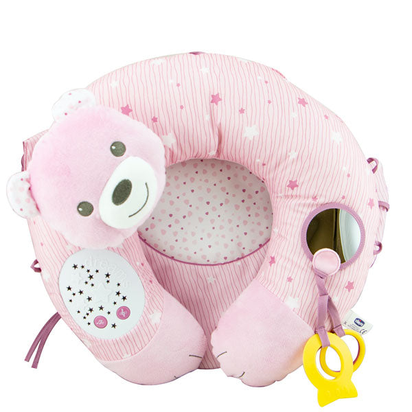 Comforting nest pillow to cradle baby, with soft teddy head for company and adjustable playmat to adapt to the size of your little one as baby grows.