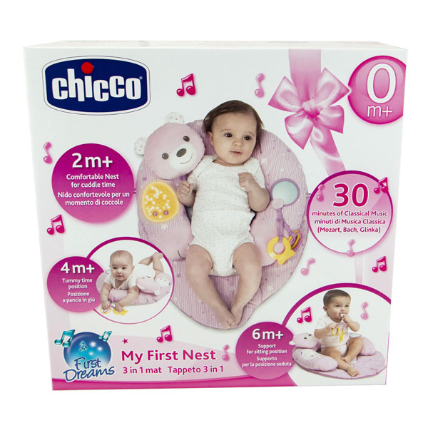 Chicco My first Nest is perfect for baby. This playmat is diverse keeping baby relaxed or even entertained. Baby's playmat allows your little one to relax peacefully during various phases of growth with 3 rest positions: