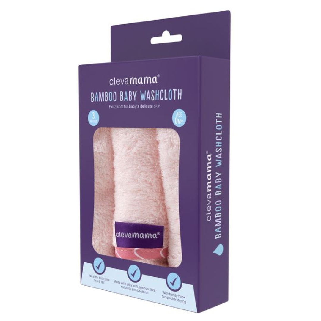 ClevaMama Bamboo Baby Washcloth Set 3pk Pink