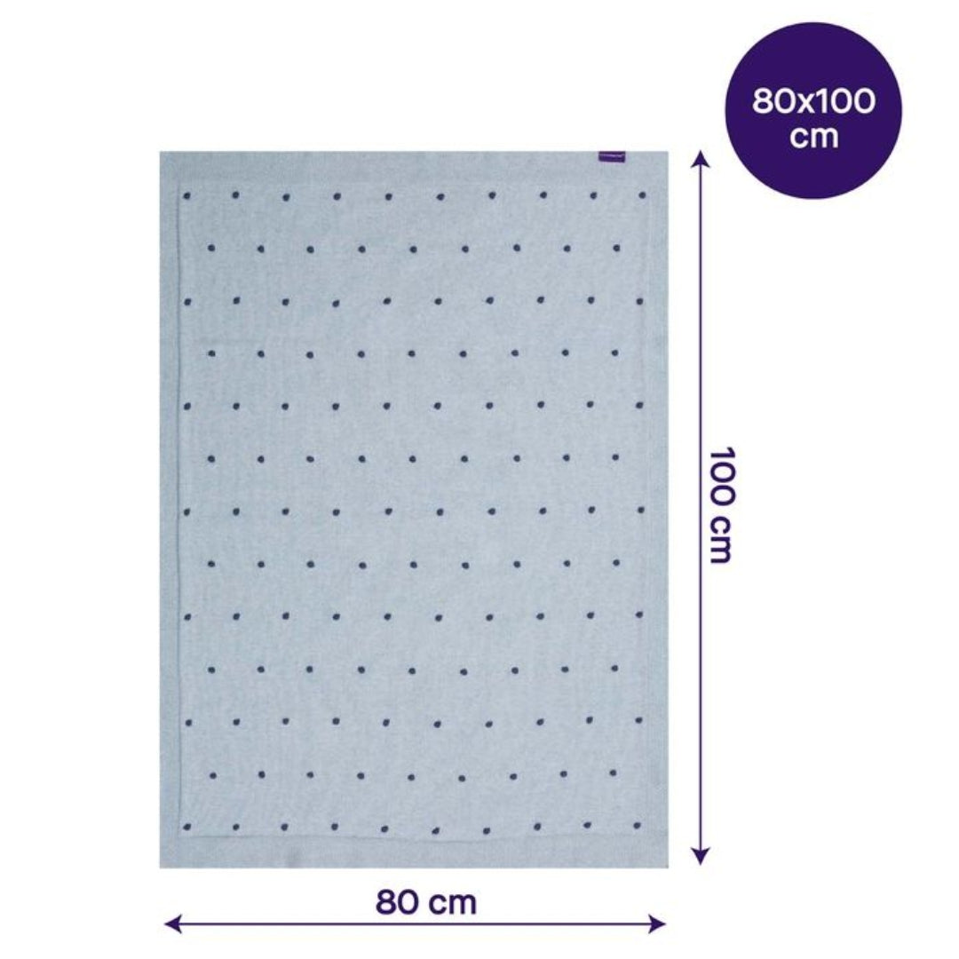 ClevaMama Knitted Pom Pom Baby Blanket Organic Cotton Blue