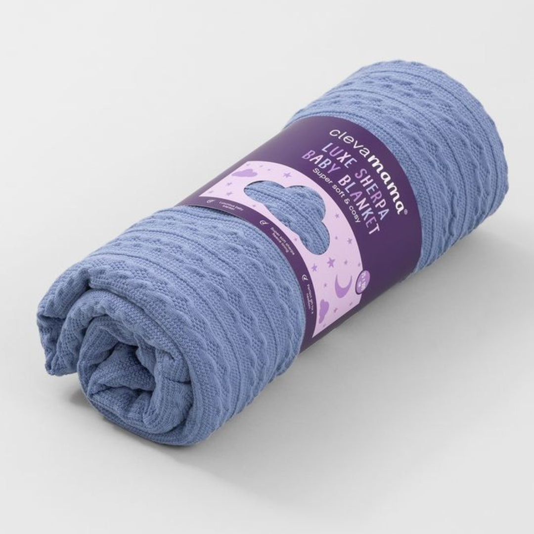ClevaMama Luxe Sherpa Baby Blanket Blue