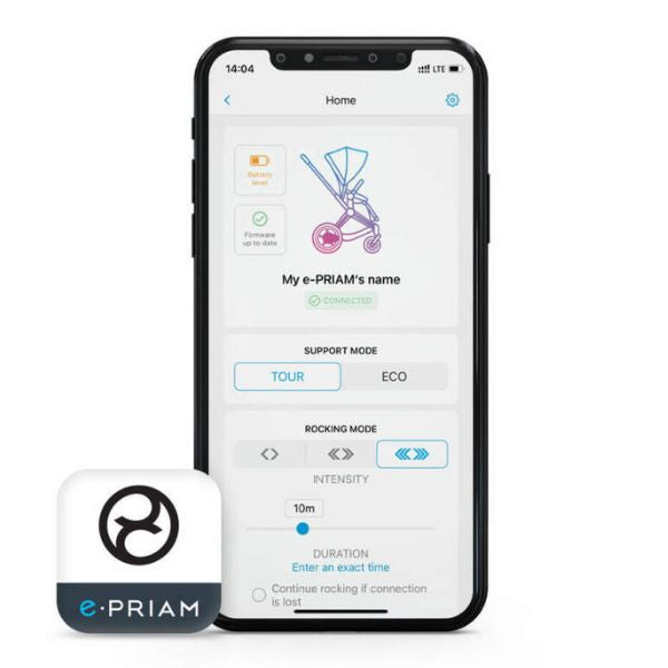 With a newly launched app, the e-Priam now offers ground-breaking functionality to make life easier for you like never before. New features include hands-free rocking, e-assist support modes, battery status and firmware updates.