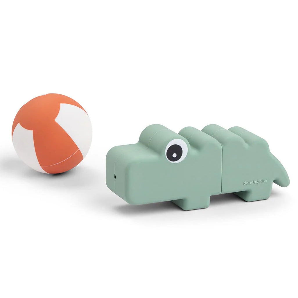 Let a Deer friend make bath time extra fun with the cute Done by Deer bath squirter featuring a cool green Croco with a striped ring. This playful toy is perfect for visual stimulation.