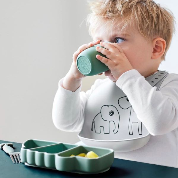 Done by Deer's Croco Silicone Stick & Stay Plate comes with three compartments and rounded inside edges to make it easier for your child to eat independently at a young age.