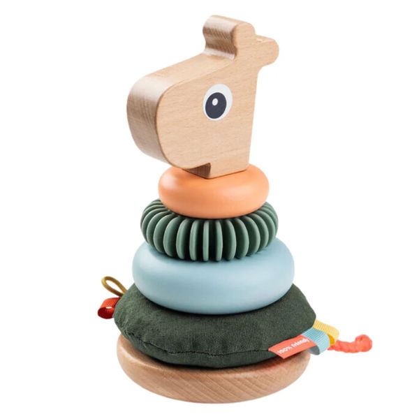 This sensory stacking tower will keep curious minds busy. Build the body of Raffi the giraffe with different tags, textures and grooves.
