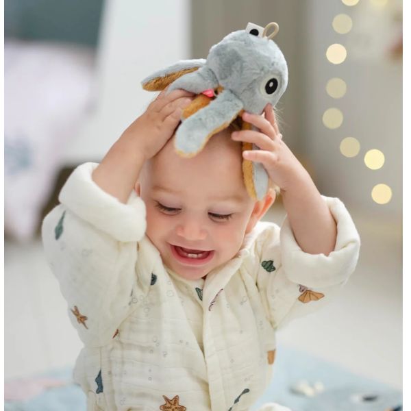Jelly is a forever helpful friend who is always ready to give you a hand - or seven. This jellyfish rattle is a perfect first toy with sensory features and sweet sounds. Try giving Jelly a soft squeeze and hear the thrilling crinkle sound.