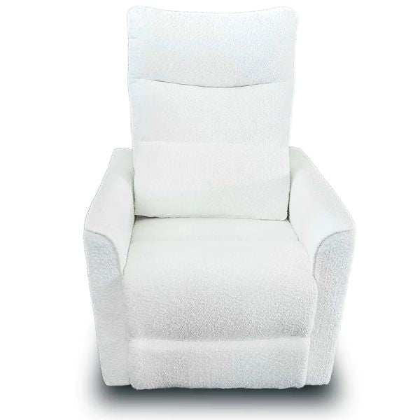 Lily is our beautiful white Bouclé glider. No need for an ottoman because this amazing nursing chair features a pop-up leg rest. You don't have to worry about any accidents because our chair locks into place when you recline, allowing you to relax in comfort.