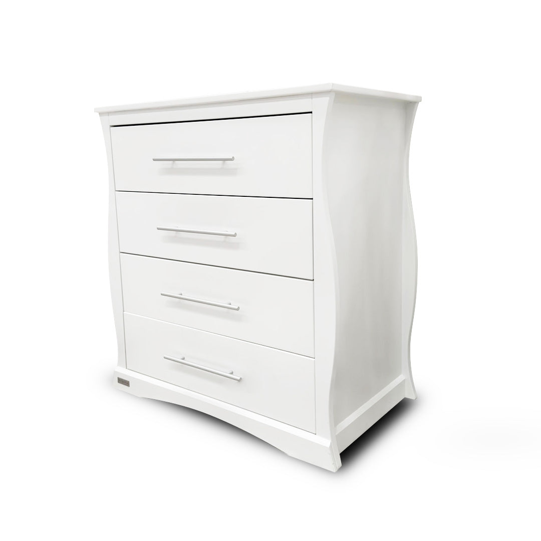 Introducing the Eldita Windsor 4 Drawer Sleigh Chest V2– a beautifully designed addition that brings an air of sophistication to any nursery. Its traditional curvy silhouette adds a touch of elegance that complements various decor styles.