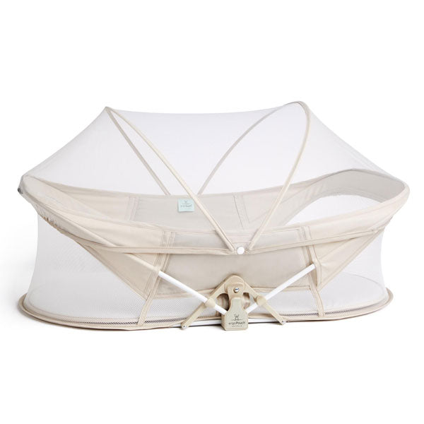 to put baby down when out and about. Also included is a detachable mosquito net to keep bugs, pets and prying siblings out while baby sleeps.