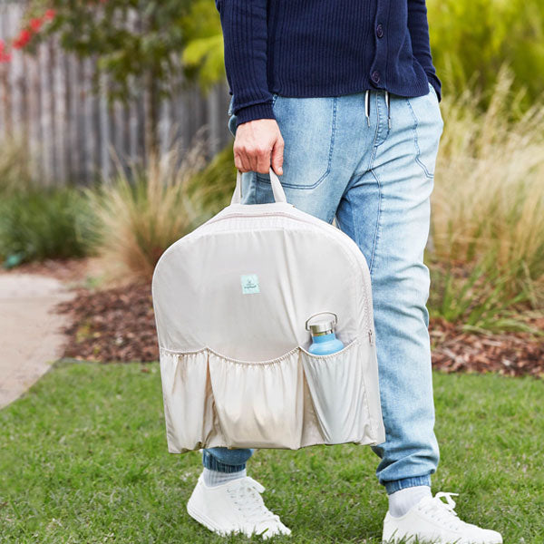 The bassinet features a lighweight but sturdy steel frame, which folds away into a super compact backpack for easy transport and storage.