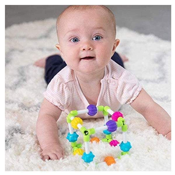 Young minds will bloom at the sight of this cube! Each edge is connected by elastic bands to allow little hands to bend it and twist it this way and that. Meanwhile, the rubbery textured beads spin and slide for an extra boost of sensory fascination. Little ones just can't stop exploring!