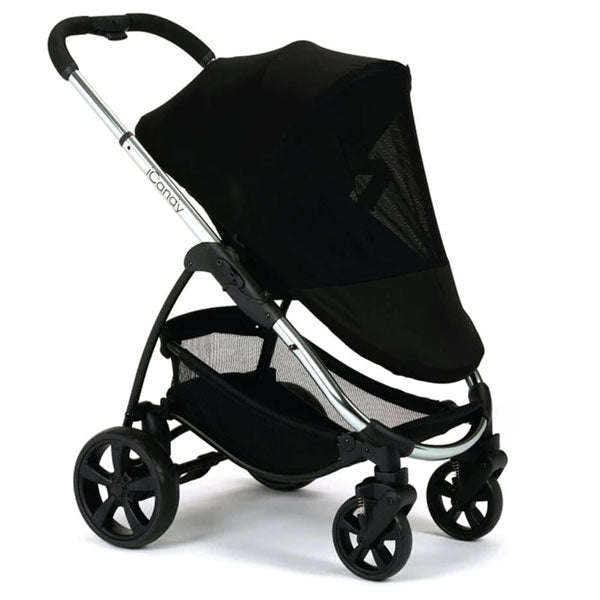 The iCandy Screen features a maximum rated UPF 50+ fabric, which effectively blocks up to 99% of harmful UV rays, covering the child’s head, neck, shoulders and legs. Mesh is anti-glare and surrounding fabrics offer UPF50+. The Universal fitting iCandy Screen can be used across our entire pushchair range and on the majority of pushchair brands. This product comes with its own iCandy branding bag.