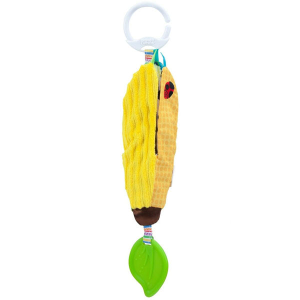 Plus, it has a clip-and-go ring for easily attaching to a stroller or car seat, and tethered to the bottom is a chewy leaf that's perfect for teething!