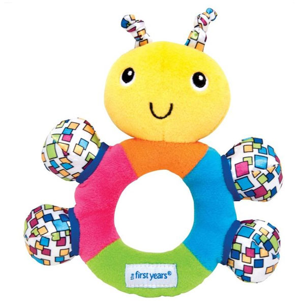 The Lamaze My First Rattle features interesting colours, sounds and textures for baby to explore. Bright colours and contrasting patterns provide your baby with visual stimulation while the easy-to-grip legs around the body help encourage early grasping. A fun rattle sound and surprise crinkles engage baby as they hold on to this cute first toy. Babies do explore using both their hands and mouths, so the knotty antennas and soft surfaces are designed to be great for chewing.