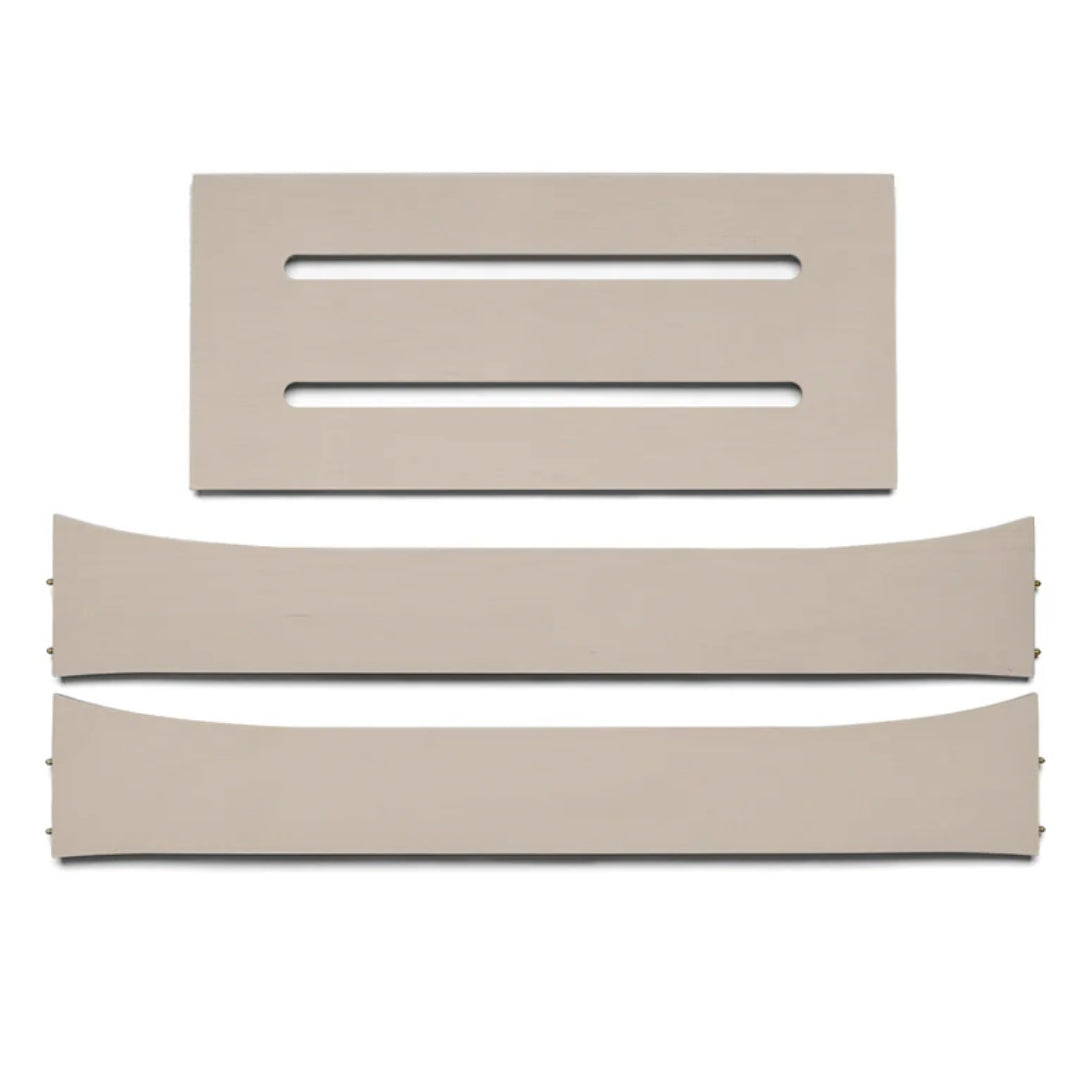 - The kit consists of an extension piece for the mattress base and two longer side pieces and reuses the hardware from the cot.