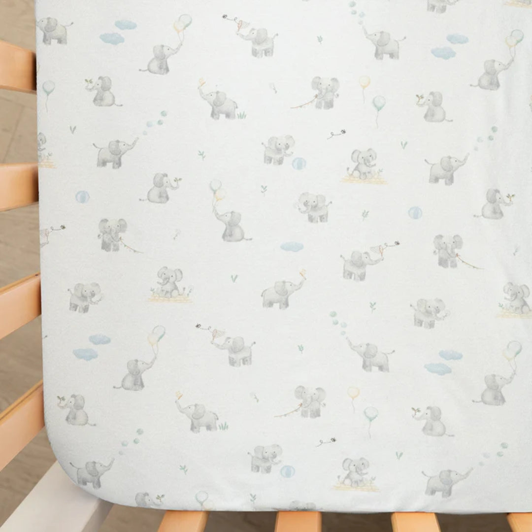 Living Textiles Cot Fitted Sheets 2pk Elephant Playtime
