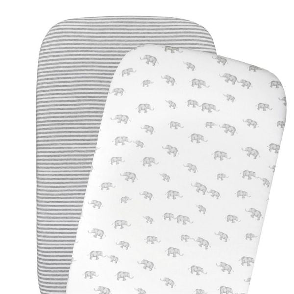 Living Textiles Jersey Bedside Bassinet Fitted Sheets 2pk Watercolour Elephant