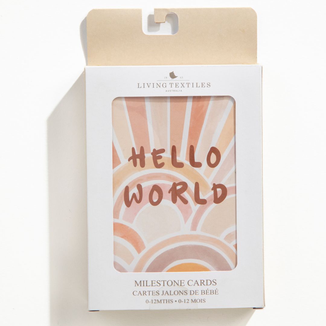 This set of 13 double-sided milestone cards feature some of your little one's big moments. From hello world to 1 year old, these matte, heavyweight cardstock cards are perfect as a baby shower, new baby present and nursery decorations.