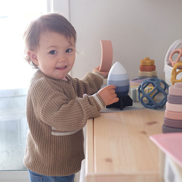 Develop your baby's fine motor skills and hand-eye coordination with this cute and playful rocket stacking puzzle. Made from BPA-Free food-grade silicone, the cool rocket is safe to chew and easy to clean.