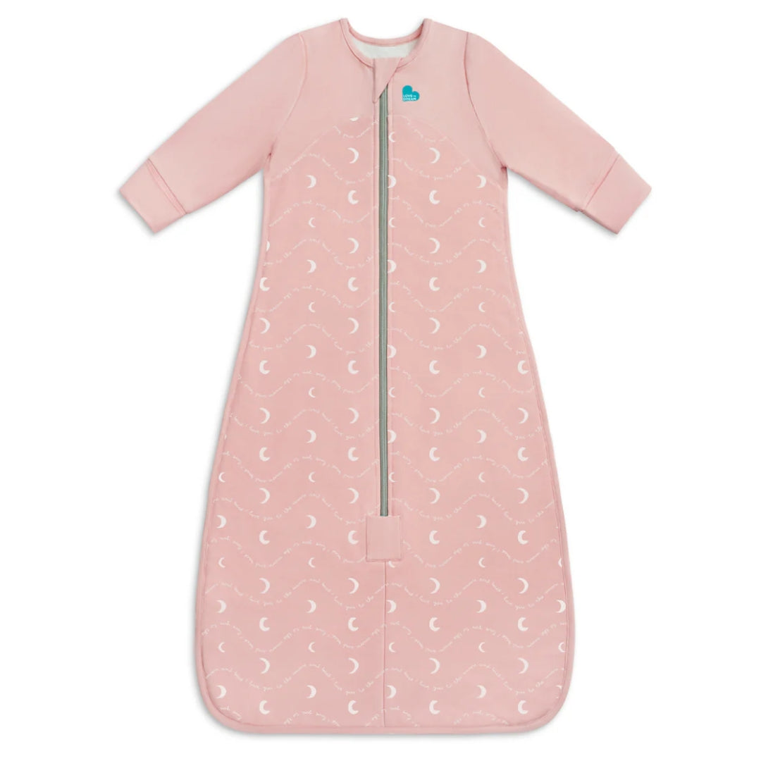 Love to Dream Sleep Bag Long Sleeve Stretch Cotton Fleece 1.5Tog Moon & Back Dusty Pink 18-36m