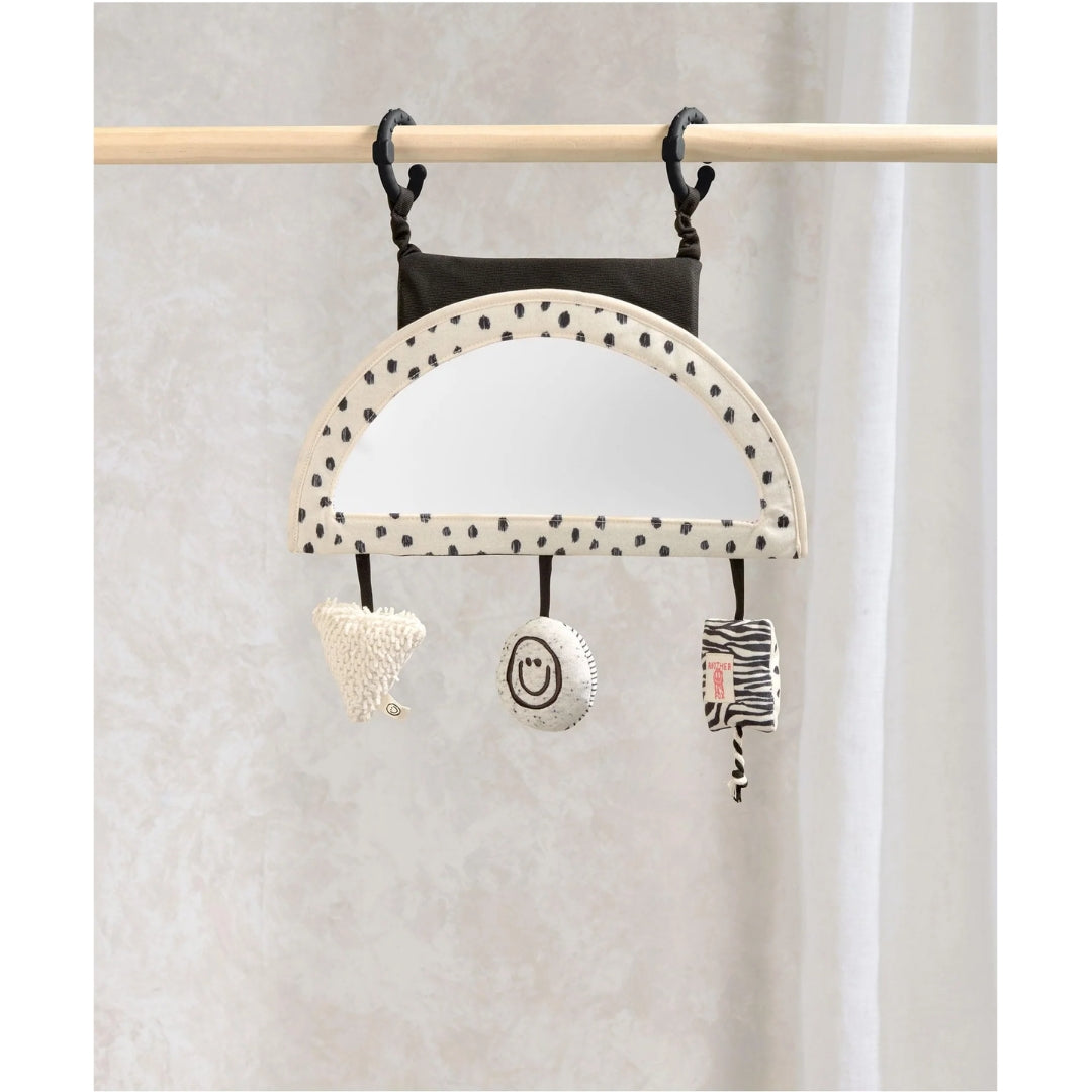 With bold black-and-white patterns to support early visual focus, this sensory-packed car toy turns every journey into an adventure. Created in collaboration with Another Fox, it features a baby-safe mirror and a trio of 3D hanging toys with crinkles, rattles and squeakers to keep little hands, eyes and minds busy. With stimulating textures and sounds to discover, it's perfect for sparking imagination on the go. Compatible for use in most cars, simply use its C-rings to hook onto car head rests.