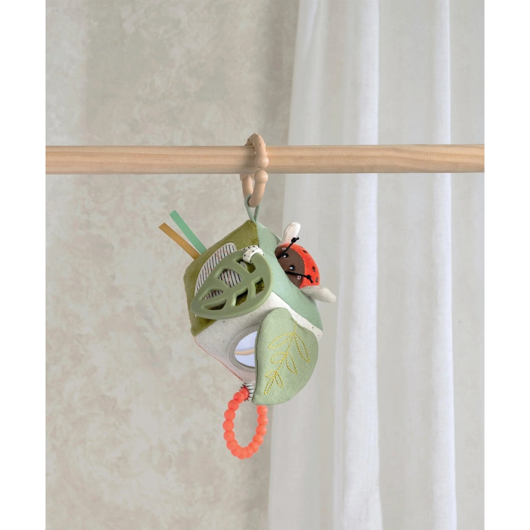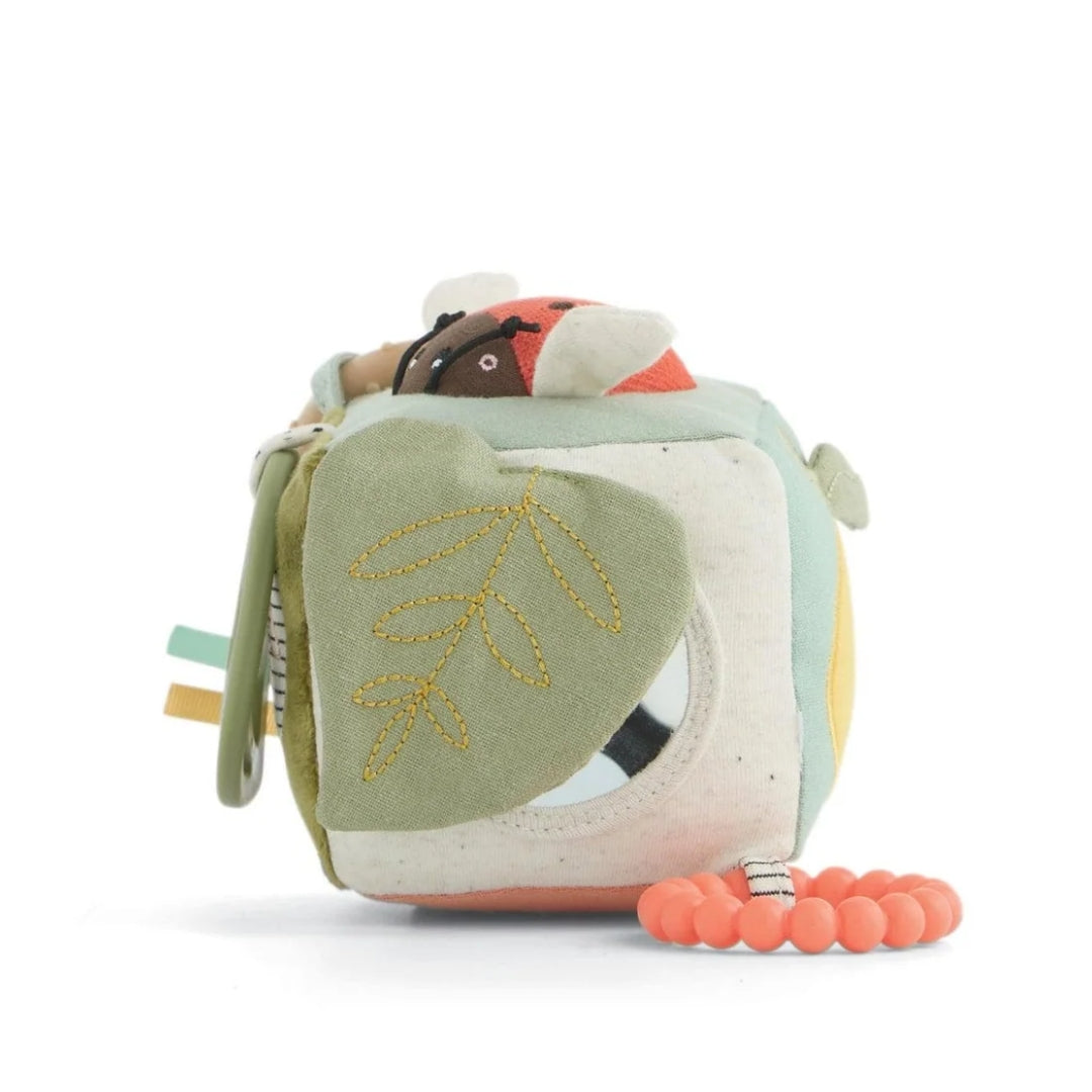 - A mini but mighty baby activity cube packed with jangly, crinkly sounds, 3D elements and grabbable taggies that baby will love to touch, feel and play with.
