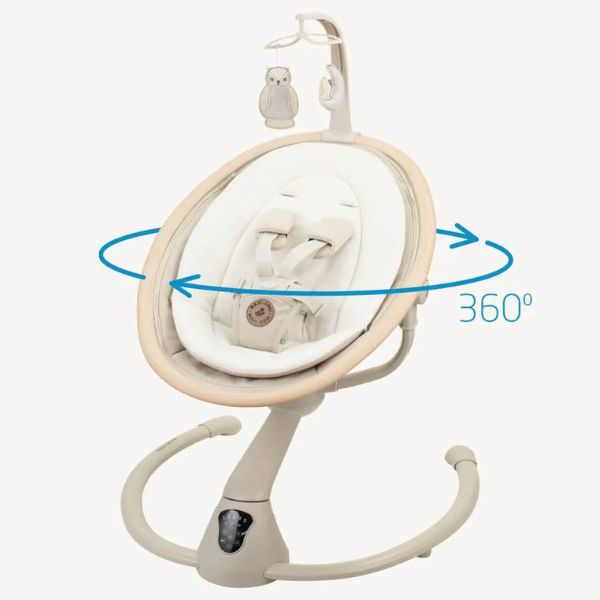 Cocooned in the soft, padded inlay, your baby will comforted by the 12 melodies and nature sounds that Cassia plays. Wherever you are in the room, the 360⁰ rotation ensures you always have eye-contact with your little one.