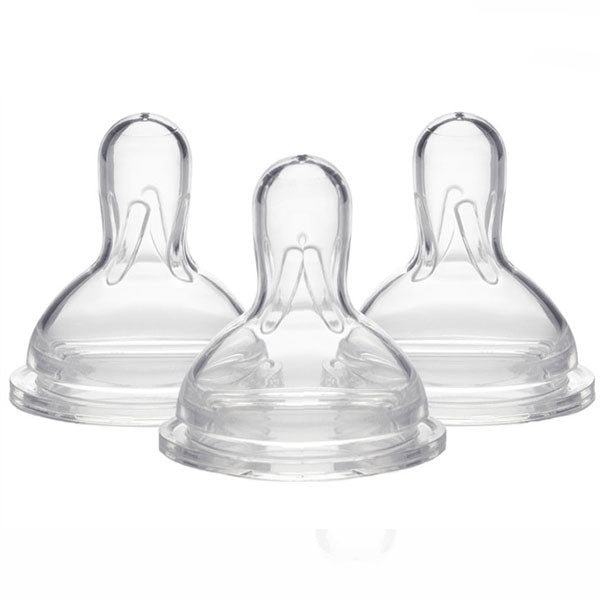 This set includes 3 - wide base medium-flow silicone nipples. Medela wide base silicone nipples are available in slow and medium flow for feeding newborns and infants.