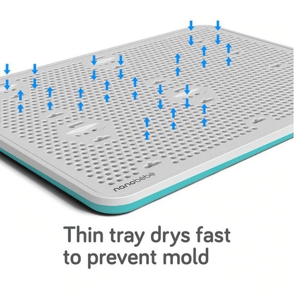 Nanobébé’s Slim Drying Rack is designed for fast and hygienic drying and is both practical and beautiful. Two peg heights accommodate all bottle and accessory sizes. The pegs are removable, so you can arrange them in whichever way suits your drying needs. Nanobébé’s compact drying rack features a detachable drip tray to collect excess water, which should be emptied and washed regularly. And when drying is done, remove the pegs and store your drying rack flat for ultimate convenience.