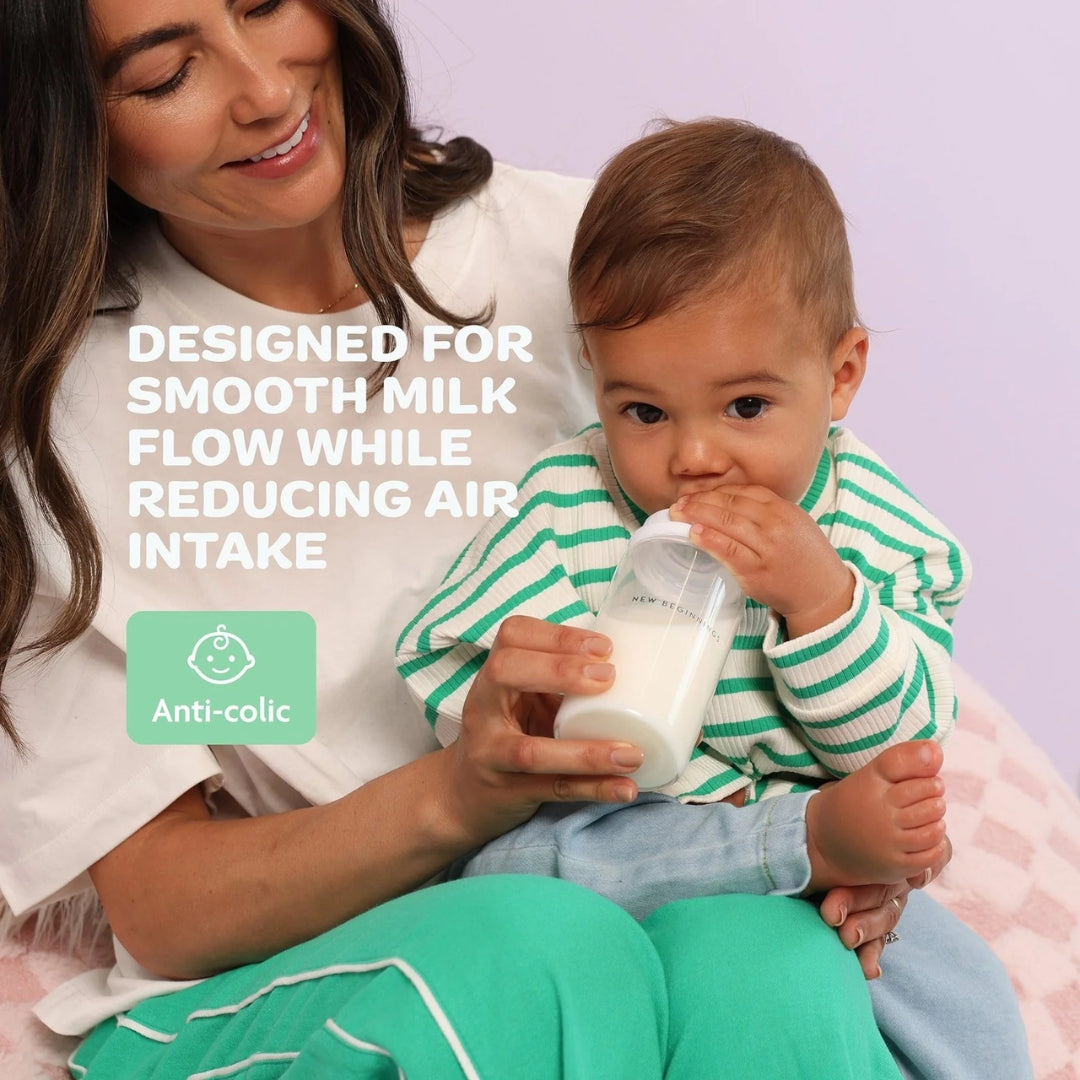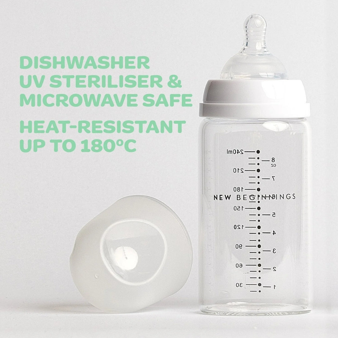 The New Beginnings Classic Glass Bottle is here to make feeding time safer, smoother, and a whole lot easier. Crafted from durable borosilicate glass, it stands up to heat, scratches, and daily use—staying crystal clear through every feed.