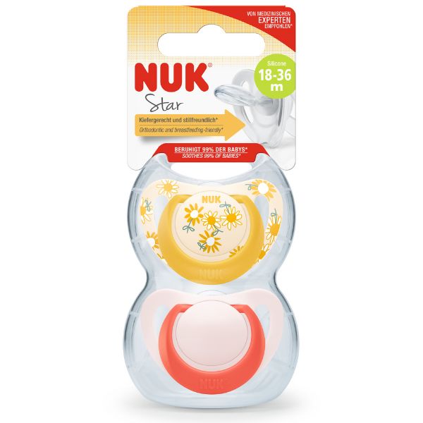 NUK Star Silicone Soother 18-36m Girl 2pk