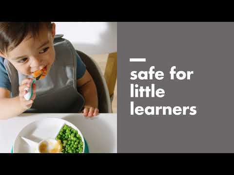 Both Fork and Spoon make it easy for young eaters to get their food from dish to mouth. A flat spot on the handles prevents the fork and spoon from rolling off the table or high chair tray, and the soft grips are shaped to keep them from sliding into bowls or plates. Made of durable stainless steel.